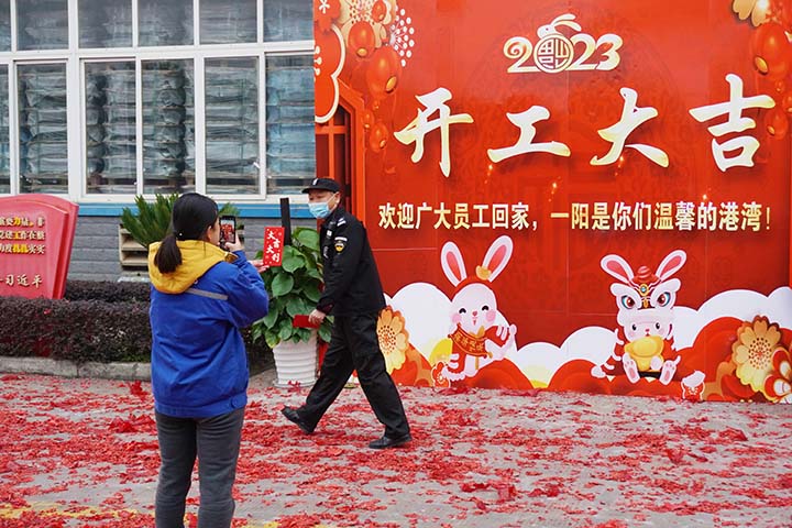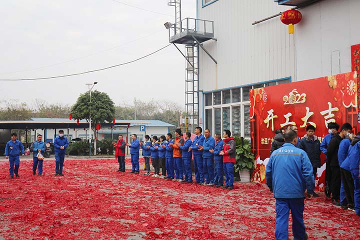 正月初七上午,柳州一陽科技股份有限公司舉行新年開工儀式,公司管理層在道路兩側整齊列隊歡迎員工“回家”,向員工致以最熱烈的新春祝福和返崗歡迎。