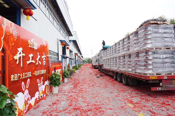 人勤春來早,奮進正當時!開工儀式當日上午,滿載輪轂的貨車接二連三的駛出。開工即發貨,寓意著柳州一陽在新一年大吉大利、紅紅火火!