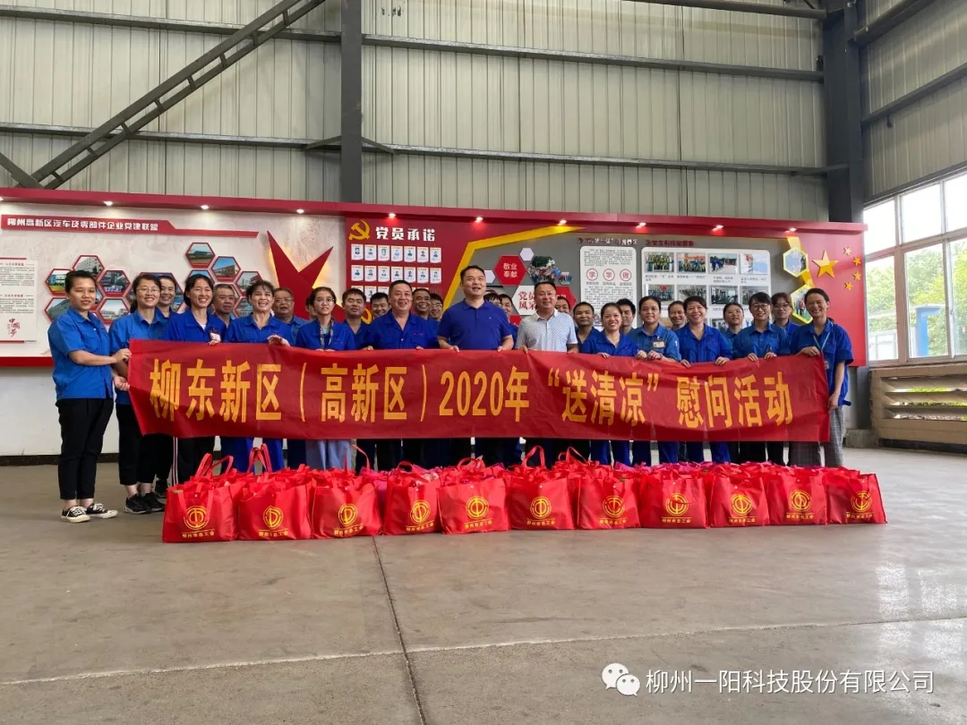 酷暑送清涼,關懷暖人心。2020年8月7日,柳東新區黨工委委員、柳州市紀委監委派駐柳東新區紀檢監察組組長周志華和柳東新區(高新區)工會主席李慕江蒞臨我司開展送清涼活動,看望慰問我司奮斗在一線的廣大職工,并送來夏季防暑物品,給職工們帶去了一絲絲“清涼”,公司黨支部書記、副董事長兼總經理吳振國參與派送。