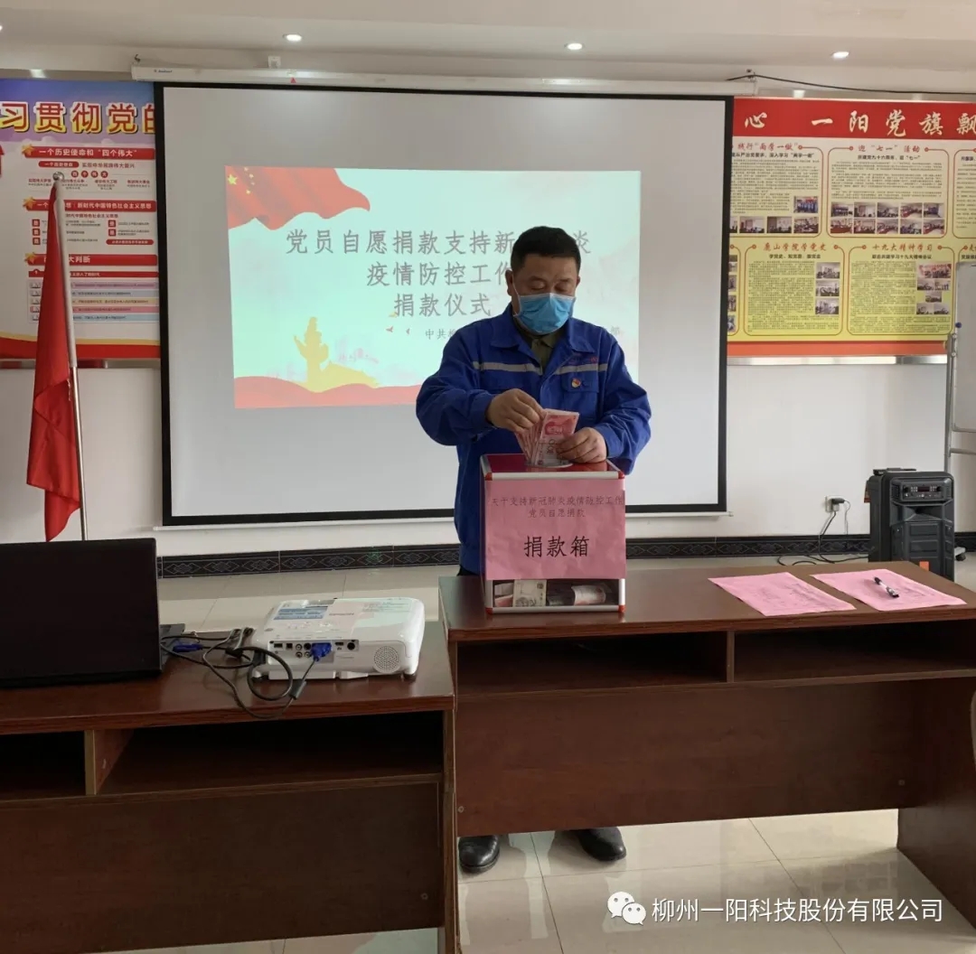 當前,新冠肺炎疫情牽動著每一個人的心,2020年3月2日,柳州一陽科技股份有限公司黨支部積極響應柳東黨群部“關于組織黨員自愿捐款支持新冠肺炎疫情防控工作的通知”的號召,22位同志共捐款人民幣3130元。